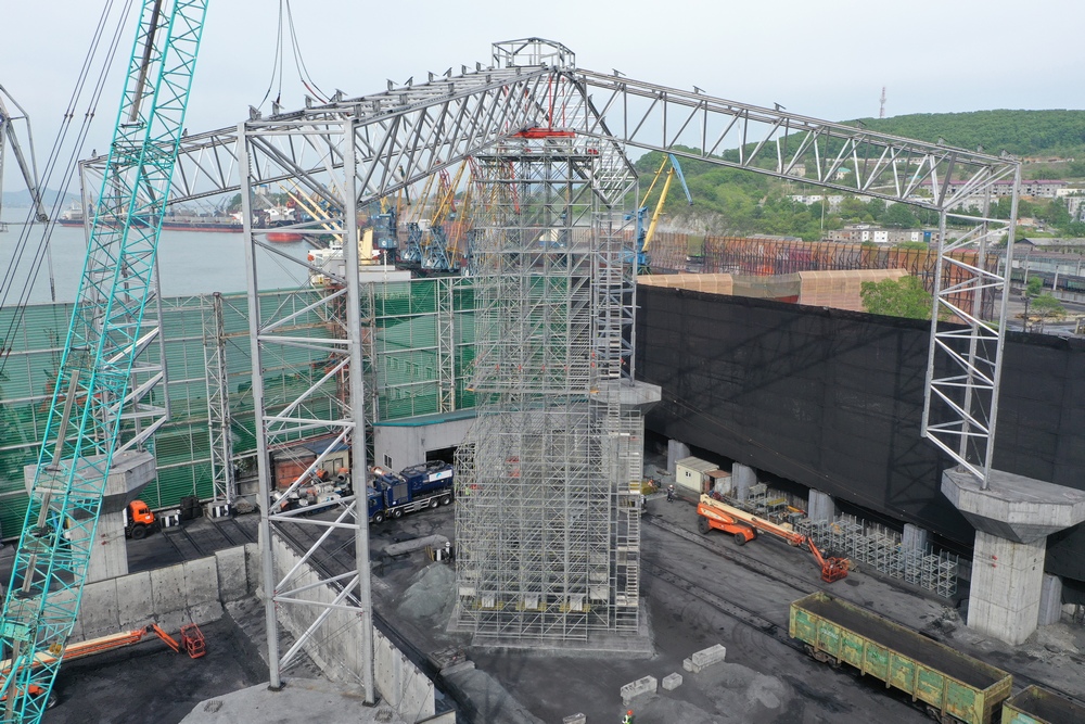 Отметим, что монтаж навеса идет на высоте от 33 до 39 метров, что превышает защитные экраны «Терминала Астафьева», самые высокие в Находке. И теперь ход работ хорошо виден всем местным жителям.