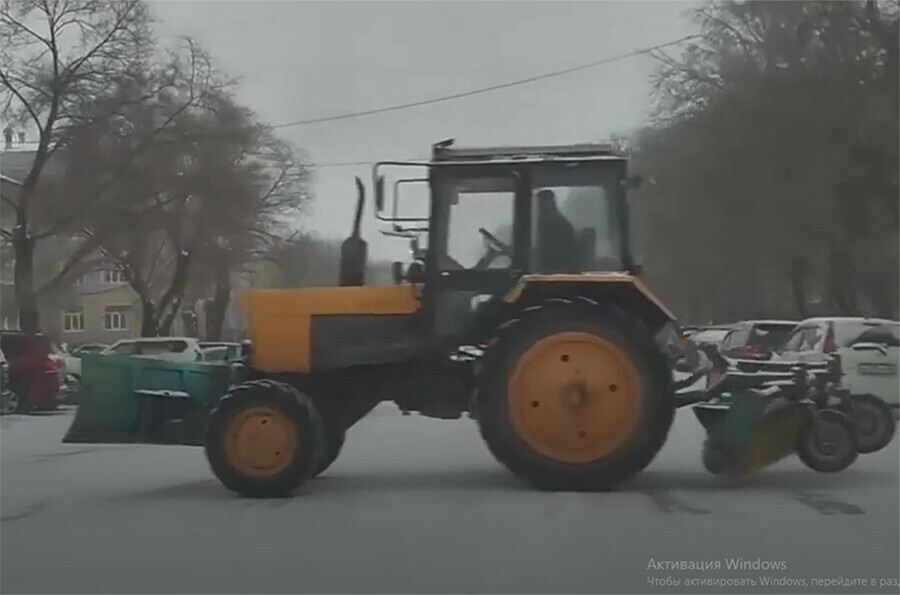 Дорожные рабочие (почти 30 человек) очищают подходы к пешеходным переходам и автобусные остановки, также для очистки тротуаров задействованы мини-тракторы, оборудованные специальными щетками.