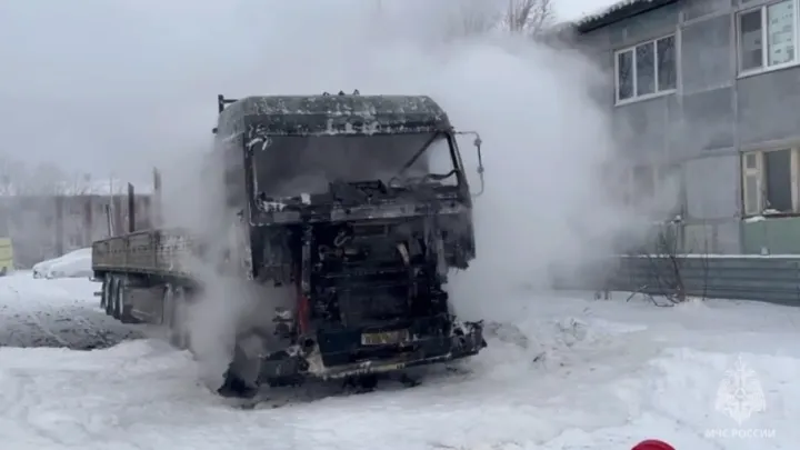 «В 09:52 минуты в пожарно-спасательную часть Губкинского поступило сообщение о возгорании фуры с прицепом в микрорайоне № 1, за домом № 41», — говорится в сообщении МЧС.