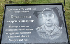 На Аллее Памяти у Мирнинской средней школы установили памятную плиту в честь Андрея Овчинникова. Он был снайпером и погиб при выполнении боевого задания в Херсонской области.