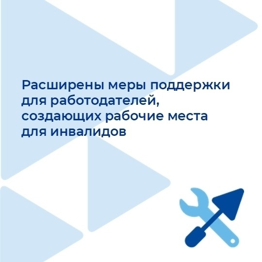 Также убрали избыточные ограничения. Теперь работодатель может обратиться за поддержкой как по линии стимулирования найма отдельных категорий граждан, так и по направлению создания рабочих мест для инвалидов.