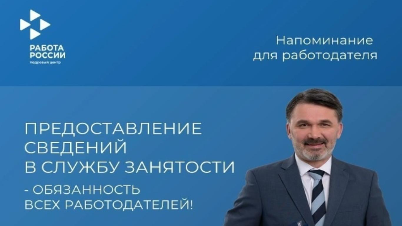 В соответствии со ст. 53 Закона РФ «О занятости населения в РФ» № 565-ФЗ от 12.12.2023г., работодатели информируют центры занятости: