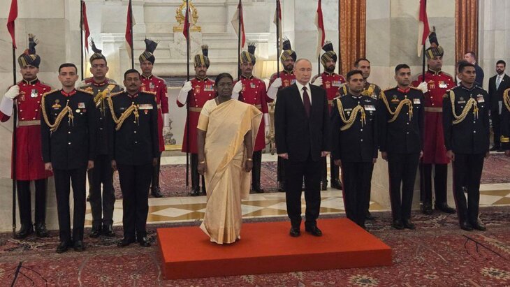 Владимир Путин встретился в Президентском дворце Индии с главой государства Драупади Мурму. После встречи также состоится прием, который завершит серию протокольных мероприятий.