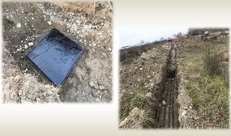 Ведутся подготовительные работы на месте будущего водопровода, включая земляные работы и рытье траншей.