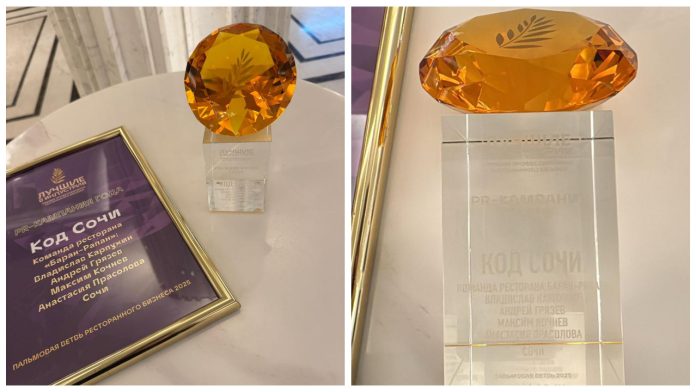 1 декабря в Москве на «Форуме лидеров фуд-индустрии» прошла церемония вручения премии «Лучшие в индустрии — 2025» — одной из самых престижных наград в ресторанном деле. Победителем в номинации «PR-кампания года» стала команда из Сочи. Награду получили представители ресторана «Баран-Рапан»: Владислав Карпухин, Андрей Грязев, Максим Кочнев и Анастасия Прасолова.