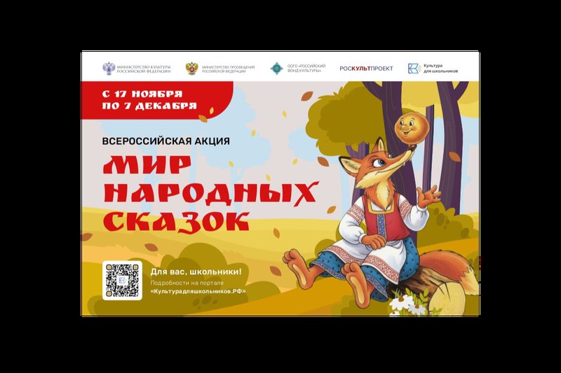 Сегодня, 17 ноября,стартует всероссийская акция «Мир народных сказок», организованная в рамках проекта «Культура для школьников». 100 наиболее интересных работ-победителей в жанре сказочного эпоса будут опубликованы.
