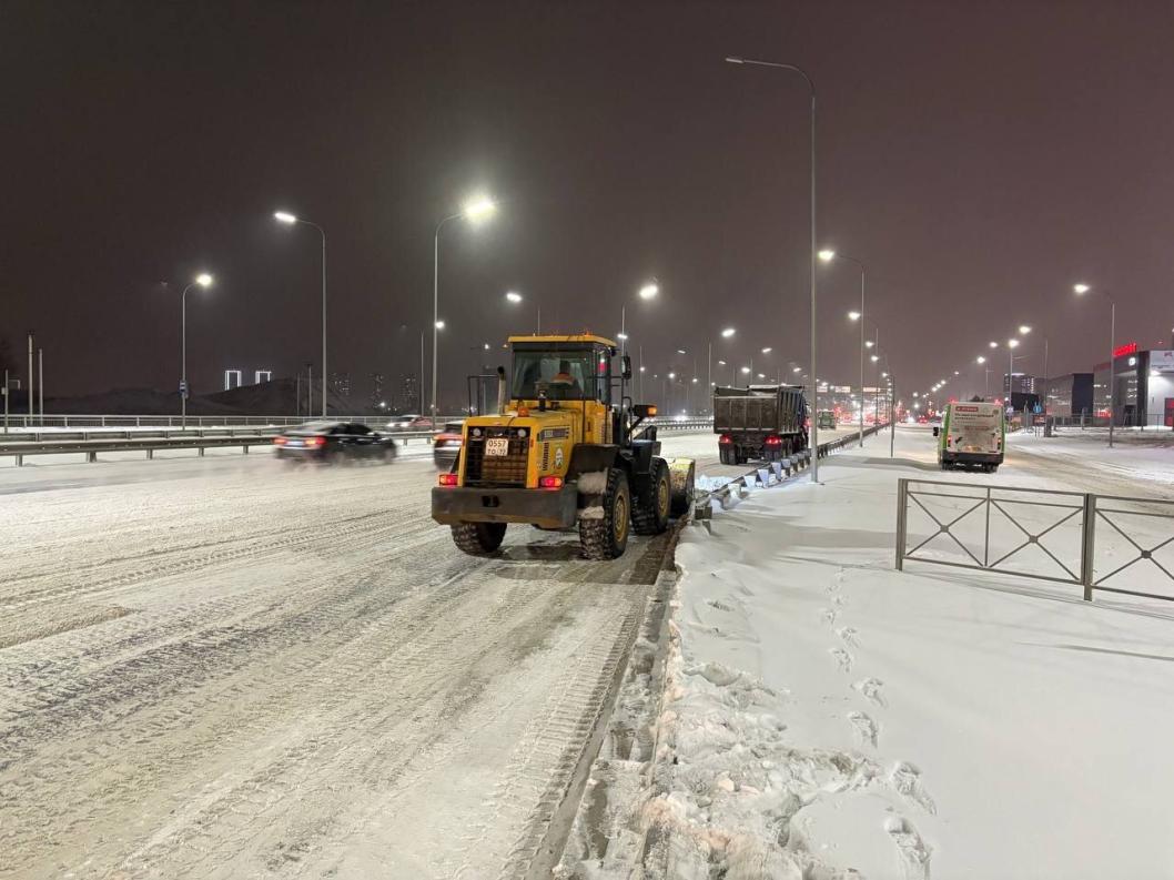 Ночью на улицах города работало 427 единиц дорожной техники, включая комбинированные дорожные машины, тракторы, погрузчики и самосвалы.