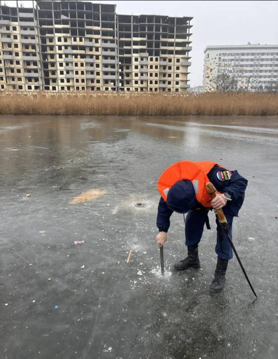 В Астрахани держится относительно теплая погода, и лед на внутригородских водоемах стремительно тает. Его толщину сегодня вновь проверили специалисты городского аварийно-спасательного центра.