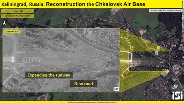 Также CNN, ссылаясь на спутниковые снимки, указывает, что работы по модернизации были проведены на базе «Чкаловск» к северу от Калининграда. При этом телеканал «Звезда» 7 октября указывал, что на эту базу вернулись после масштабной реконструкции самолеты 72-й авиабазы морской авиации Балтийского флота, которые временно базировались в Черняховске. CNN при этом указывает, что в Черняховск были отправлены комплексы «Искандер».