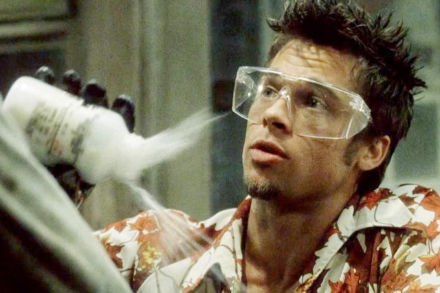 Кадр из фильма «Бойцовский клуб», персонаж Тайлер Дёрден делает химический ожог