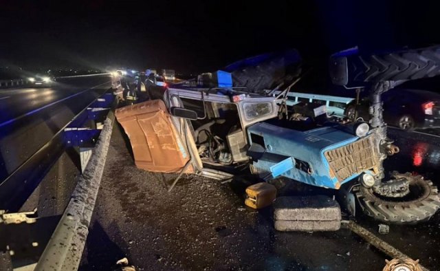 Вечером 23 октября на автотрассе Ростов — Азов произошло дорожно-транспортное происшествие с участием большегруза и трактора.