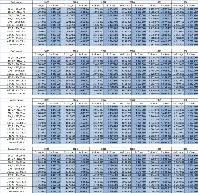 Авто с трехлитровым силовым агрегатом (от 276 до 305,52 л.с.) в 2025 году соответствует утильсбор 2,18 млн рублей. В 2030 году – 3,83 млн рублей.