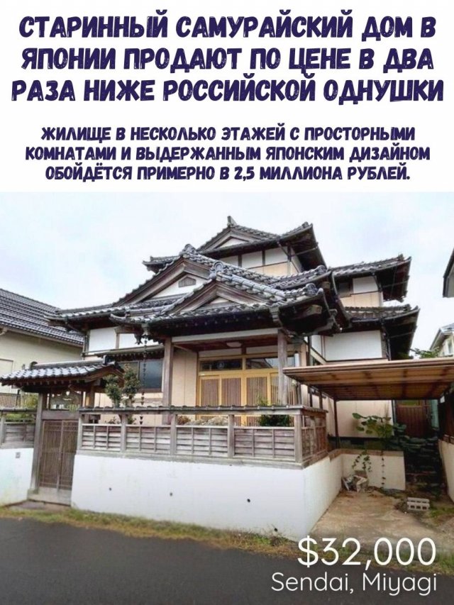 В Японии выставили на продажу многолетний самурайский дом с несколькими этажами, просторными комнатами и аутентичным японским интерьером. Цена — всего около 2,5 миллионов рублей, что почти в два раза дешевле средней однокомнатной квартиры в России.