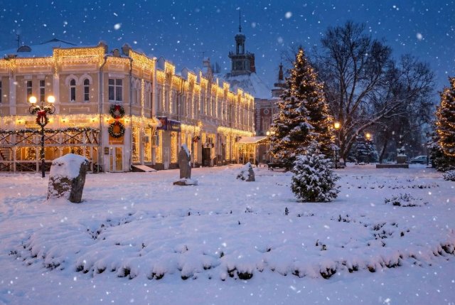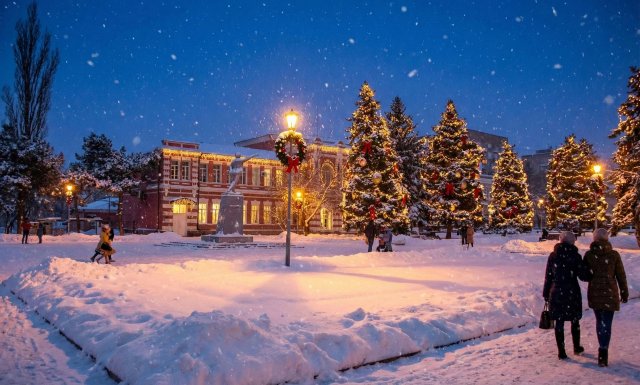Это тот самый вечер, когда город зажигает тысячи тёплых огней. Они отражаются в искрящемся снегу и в тёмных глазах прохожих, укутанных в шарфы. А с неба, будто нехотя, опускаются крупные, ватные хлопья. И внутри, вопреки морозу, разливается странное чувство — смесь полного, абсолютного покоя и радостного, детского трепета.