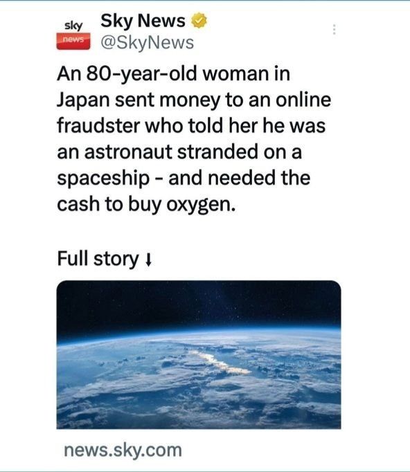 80-летняя японка перевела около миллиона йен астронавту, с которым познакомилась по интернету.
