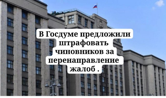 "Перенаправление жалобы на рассмотрение в государственный орган, орган местного самоуправления или должностному лицу, решение или действие (бездействие) которых обжалуется влечёт наложение административного штрафа в размере от 10 тысяч рублей до 30 тысяч рублей", - говорится в тексте законопроекта.