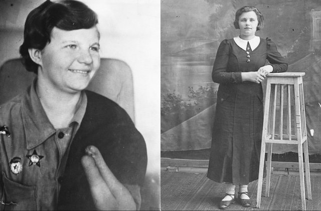 Когда началась война, эта девушка пошла на курсы медсестер. В 1942-м попала на фронт. За 8 месяцев вынесла на себе 123 раненых бойца. В одном из боев в феврале 1943-го ее помощь потребовалась командиру. Тут ранило и её, перебило обе ноги. К ней подошел немец. Ударил ногой в живот, бил прикладом — по лицу, голове. Но, к счастью, почему-то не выстрелил. Поэтому девушка осталась жива.