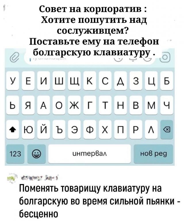 Величайшее изобретение офисного фольклора — болгарская клавиатура. Выглядит вроде как наша, родная. А буквы — в упор не те. «Х» сидит на месте «Ъ», «Ш» притворяется «Я», а запятая, кажется, улетела в параллельную вселенную.