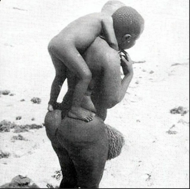 Её фигура демонстрирует ярко выраженную стеатопигию — особенность строения, при которой ягодицы достигают значительного объёма, до двух метров в обхвате. Эта антропологическая черта ранее считалась характерной исключительно для некоторых африканских народов, включая готтентотов и бушменов.