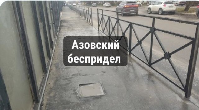2) Обледенелый тротуар⚡🤯 Видимо, как и предупреждали местные специалисты на суде и на встрече с первым замом главы администрации г. Азова В.Балахниным во время визита представителя Правительства Ростовской области И. Гелас - произошёл тот самый цикл замерзания/оттаивания труб, проложенных к горе-ларькам на ненормативной высоте и без соблюдения норм отступа по СНиП для водопровода и канализации, которого оказалось достаточно для порыва этих самых труб?!! И это хорошо, что канализацией пока никто не успел воспользоваться - иначе под ногами текла бы не вода, а совсем другая субстанция, которая имеет свойство не замерзать по известным причинам (как утверждал на встрече господин Балахнин 🤧). Кстати, стëкла ларьков в районе порыва (в створе с пер. Степным) щедро залиты жидким субстратом из содержимого дорожной грязи и, видимо, воды из порыва. А пешеходам приходится семенить в этом месте несколько метров, держась за эти самые грязные стекла, чтобы не упасть! ((