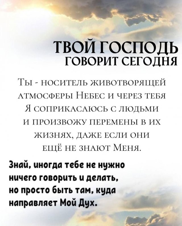 👉 Ты носитель животворящей атмосферы Небес. Это не про твои силы или таланты — это про твое положение и связь с Источником. Куда бы ты ни шёл с Богом, ты приносишь с собой частичку Его Царства: мир, надежду, свет.