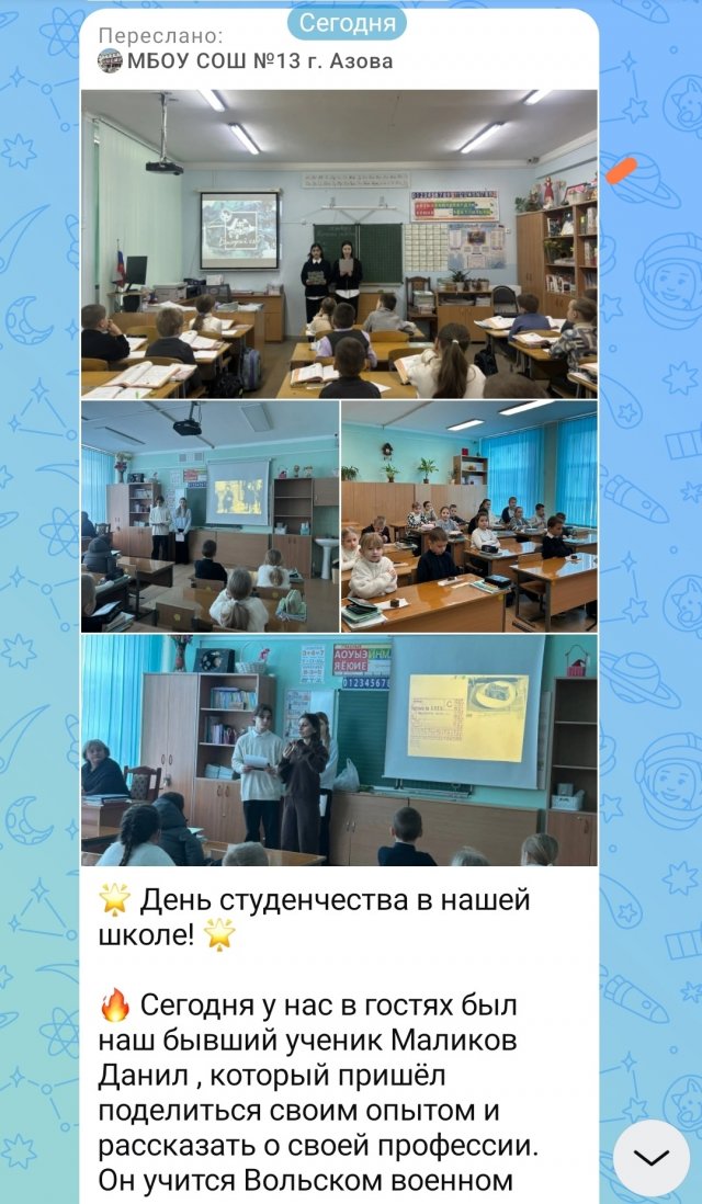 Фото детей в куртках на занятиях в школе: с офиц. страницы МБОУ СОШ N°13 г. Азова: max.ru/id61400187...
