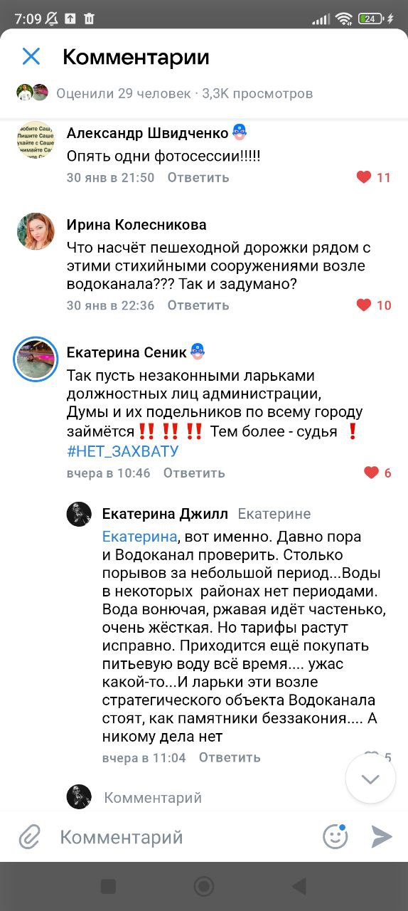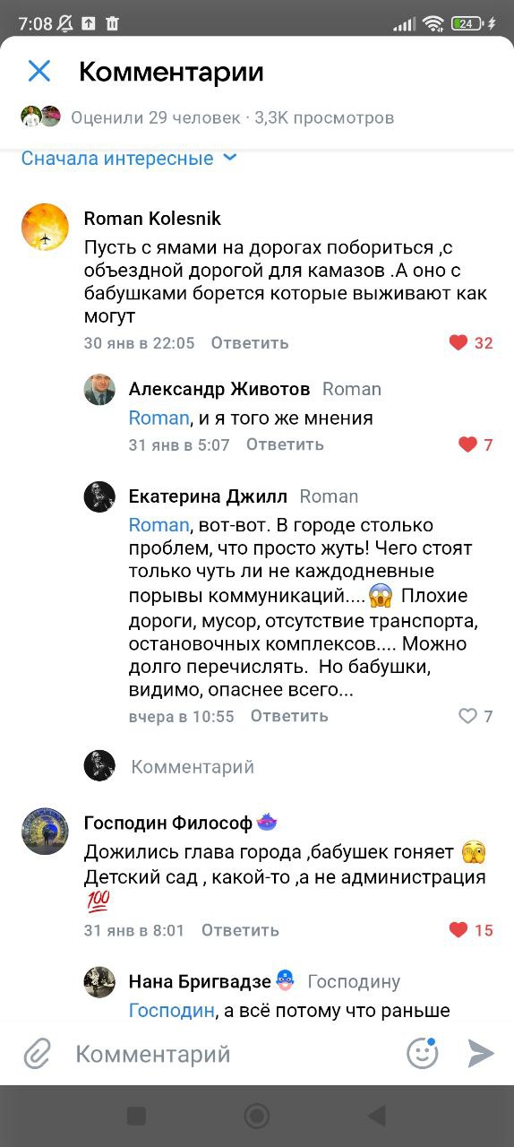 Под постом азовчане возмутились в комментариях. Ведь в городе столько первостепенных проблем, что можно перечислять их довольно долго: участившиеся порывы коммуникаций, отсутствие хороших дорог, остановочных комплексов, плохо ходит общественный транспорт и т.д., т.п. Но, кажется, торговля бабушек вне рынка - это самое страшное, что происходит в городе....