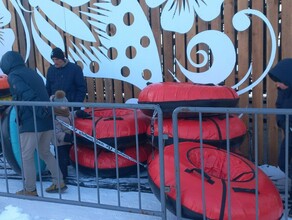 Горожане напрасно опасались нового развлечения: скорость на горке маленькая. И останавливаются тюбинги сразу у конца ската, прилично не доезжая до ограждения.
