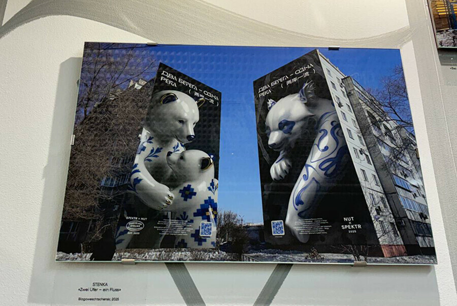 Фотографию мурала «Два берега — одна река», где изображены медведица с медвежонком и панда, представили на Берлинской неделе искусств, сообщили в мэрии. Мурал показывает тесную связь между Россией и Китаем.