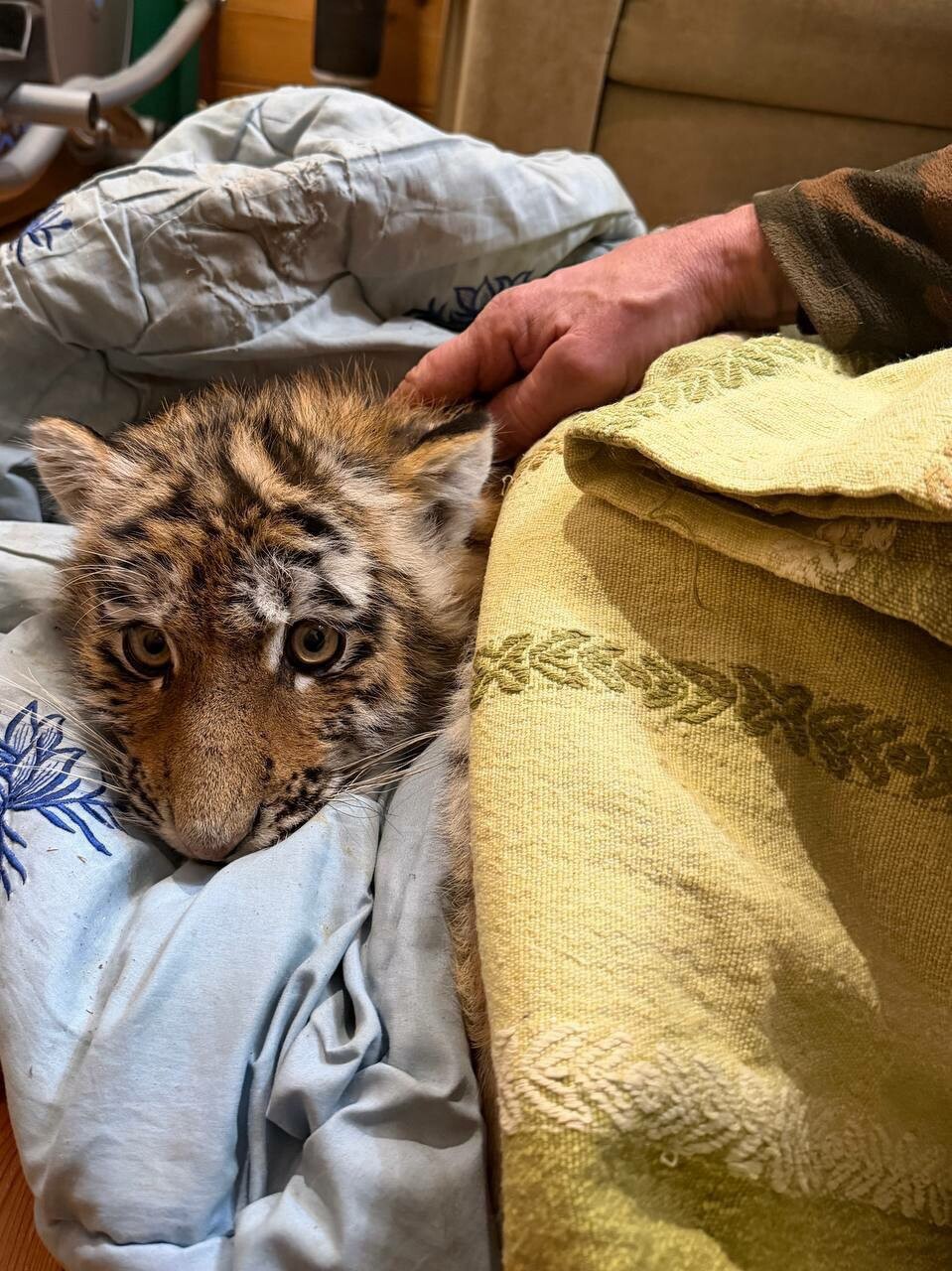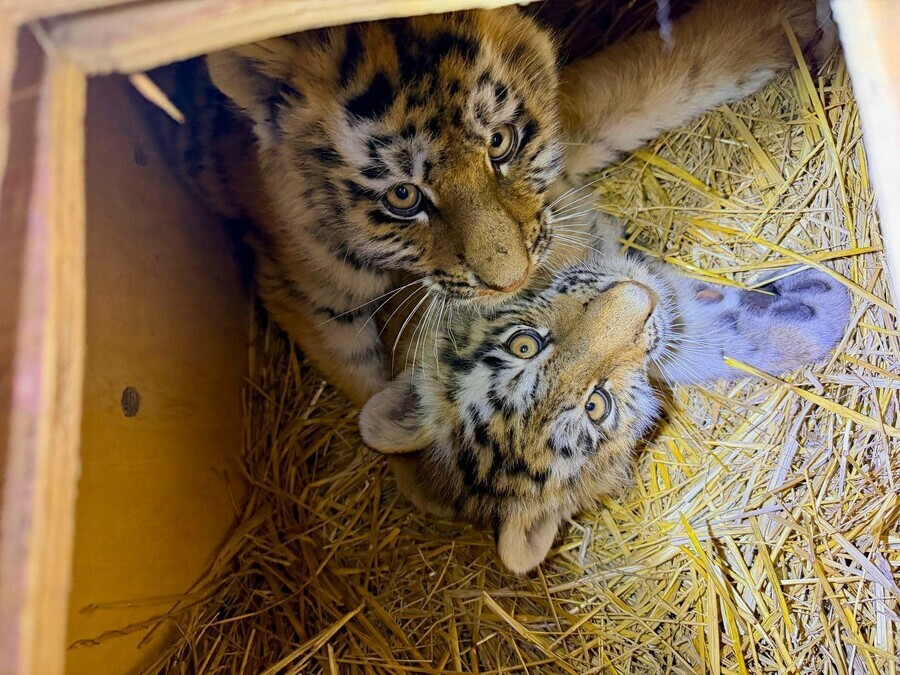 Двоих тигрят отловили и доставили в центр реабилитации в селе Алексеевка, где они пройдут ветеринарный осмотр.