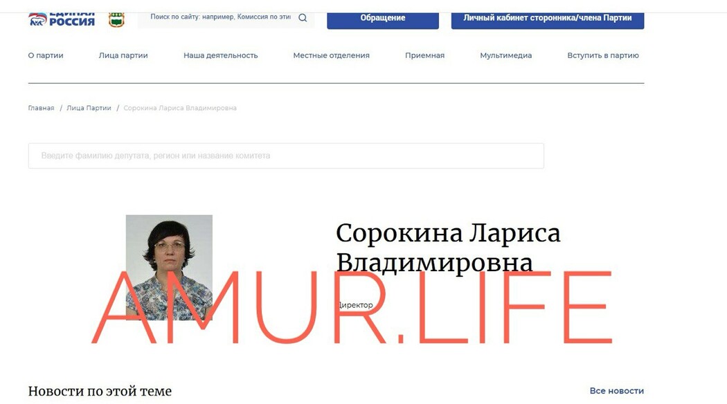 Информация о том, какие должности занимала Лариса Сорокина в региональном отделении, уже исчезла с сайта «Единой России». Теперь о ней осталась лишь короткая заметка.