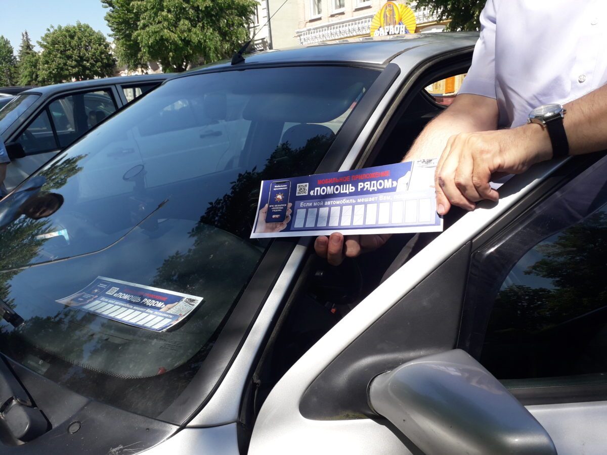 Работники бобруйского горрайотдела по ЧС сделали визитки в стиле МЧС с упоминанием мобильного приложения «Помощь рядом».