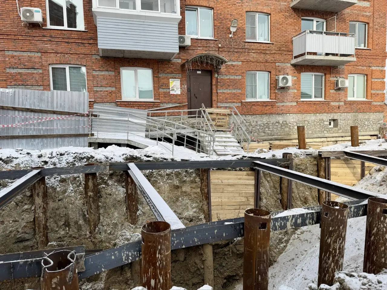 Летом прошлого года у дома на улице Крещенской обвалился асфальт. Позже яма начала разрастаться и подтапливаться – жильцы боялись, что дом просто обрушится. Выяснилось, что необходимо восстановление коллектора.