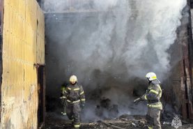 Во время тушения пожара удалось эвакуировать из бокса микроавтобус и часть оборудования, сообщают в МЧС. Также бойцы вынесли на свежий воздух 3 газовых баллона.