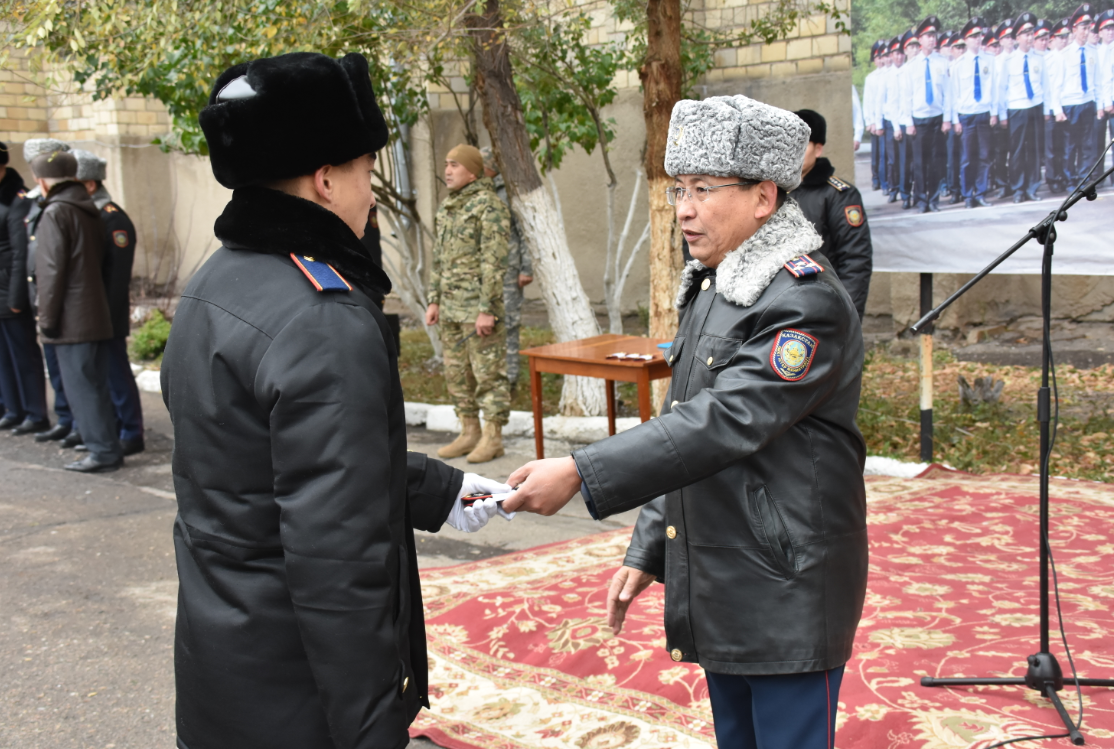 Со словами поздравления также выступил председатель Совета ветеранов ОВД области Жуман Нурпеисов. Кроме того, в этот день состоялся переход на зимнюю форму одежды -теплый бушлаг, зимнюю шапку и утепленные сапоги.