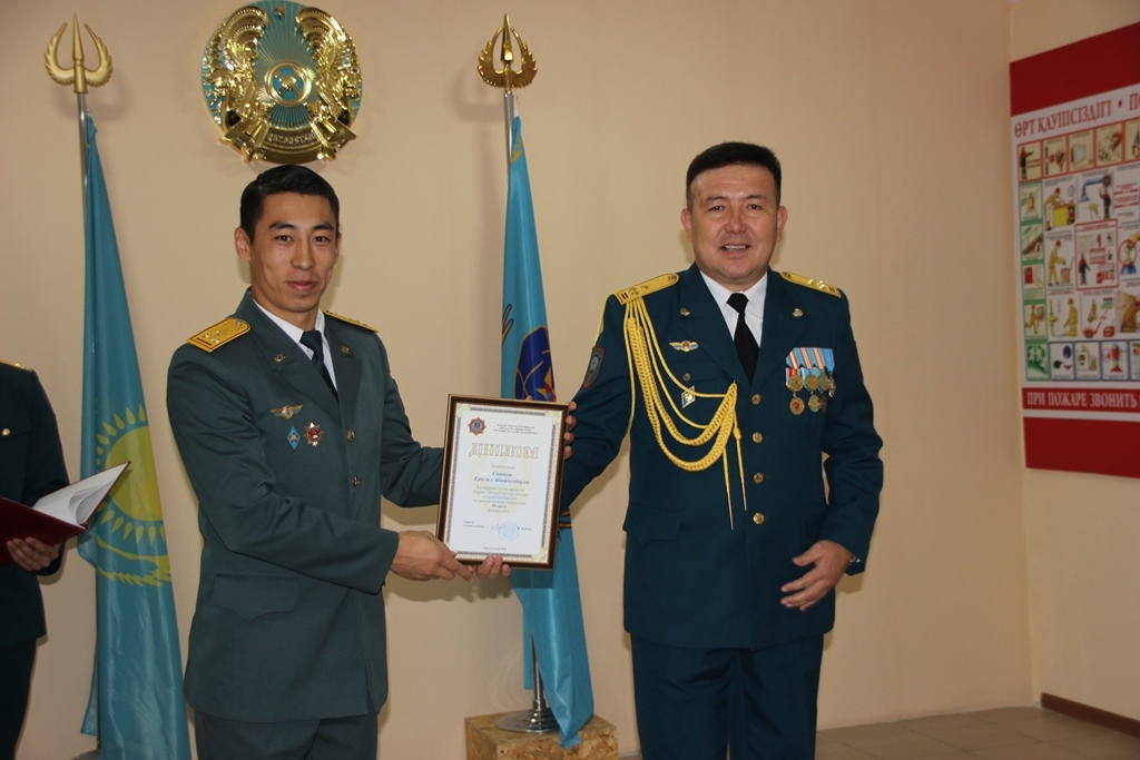 Наиболее отличившимся сотрудникам были вручены грамоты и дипломы. Грамотой Главнокомандующего Национальной Гвардией Республики Казахстан награжден майор гражданской защиты Ашимов А.Т. Диплом от Председателя КЧС МВД РК получил капитан Сайпаш Е.А. Профессионализм, решительность, отзывчивость, ответственность и мужество отличают тех, кто несет службу.