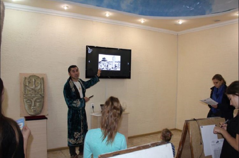 А в зале «Сакская культура» была организована площадка «Тюркские письмена». Специалист Международного общественного фонда «Наследие кочевой цивилизации» Дайыр Қыдырғалиұлы всех желающих учил тюркской грамоте.