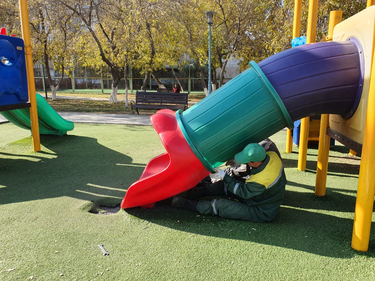 Как сообщают в КГП «Управление парками культуры, отдыха и скверами», игровые конструкции в Караганде подвергаются ремонту по мере их износа и повреждения.