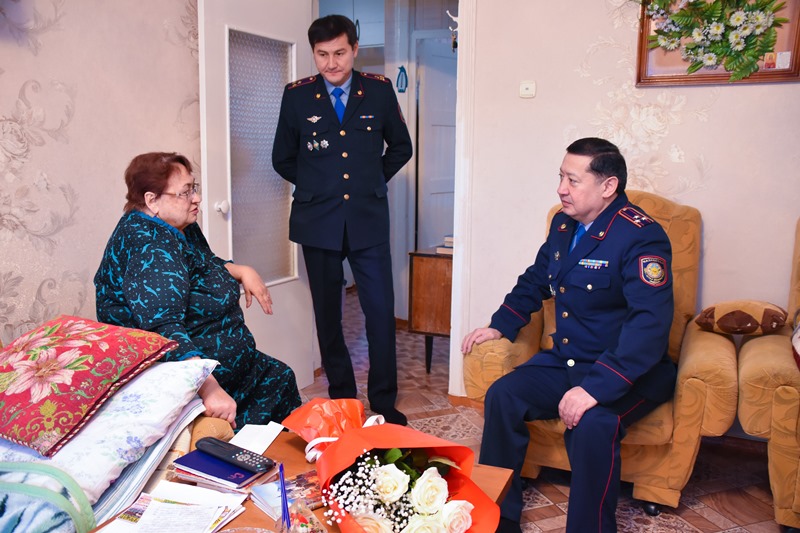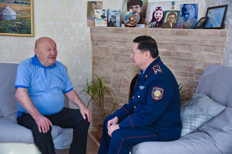 Далее полицейские посетили семью Героя Советского Союза Нуркена Абдирова - Абубакира Абдирова - полковника милиции, ветерана органов внутренних дел. Абубакир Абдиров проявляет активную позицию в воспитании патриотизма молодых сотрудников. Бахытжан Бейсеев поблагодарил ветерана органов внутренних дел, что не смотря на возраст, Абубакир Абдиров всегда участвует в общественной деятельности полиции, дает наставления и делится опытом.