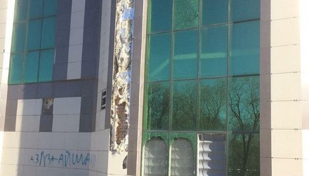 «Сотрудники аппарата акима района имени Казыбек би города Караганды совместно с местной полицейской службой города Караганды в рамках мобильной группы провели разъяснительную работу с владельцем данного здания по соблюдению правил содержания и благоустройства».