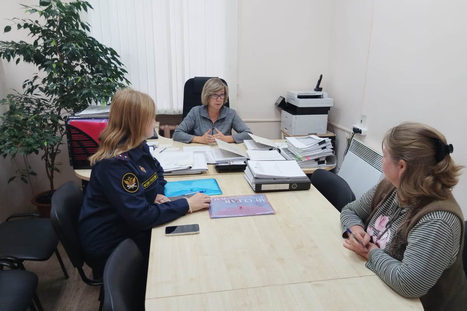 Руководитель социальной защиты Ольга Гаганова и старший инспектор группы пробации уголовно-исполнительной инспекции Светлана Кирсанова рассмотрели вопрос оказания социальной помощи осужденному, состоящему на учете в филиале УИИ, имеющему группу инвалидности.