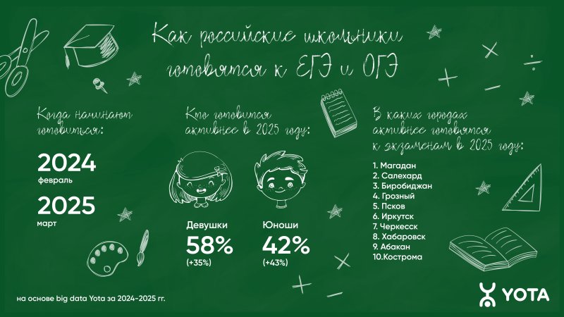 Активная подготовка к ЕГЭ и ОГЭ у школьников в 2025 году сдвинулась на март. При этом все больше учеников готовятся онлайн — число пользователей сервисов и приложений для подготовки к обязательным экзаменам с января по первые две недели мая выросло на 39% относительно прошлого года, выяснили аналитики Yota на основе обезличенных данных абонентов.
