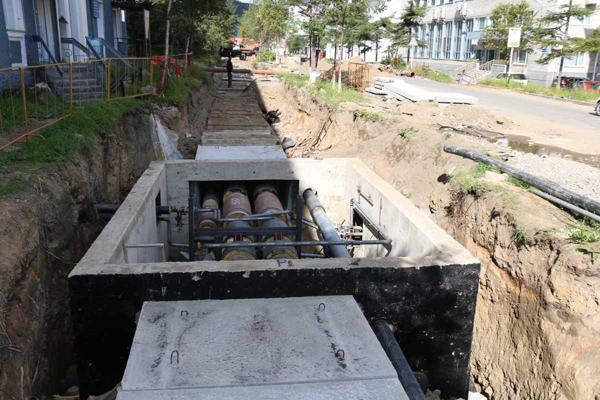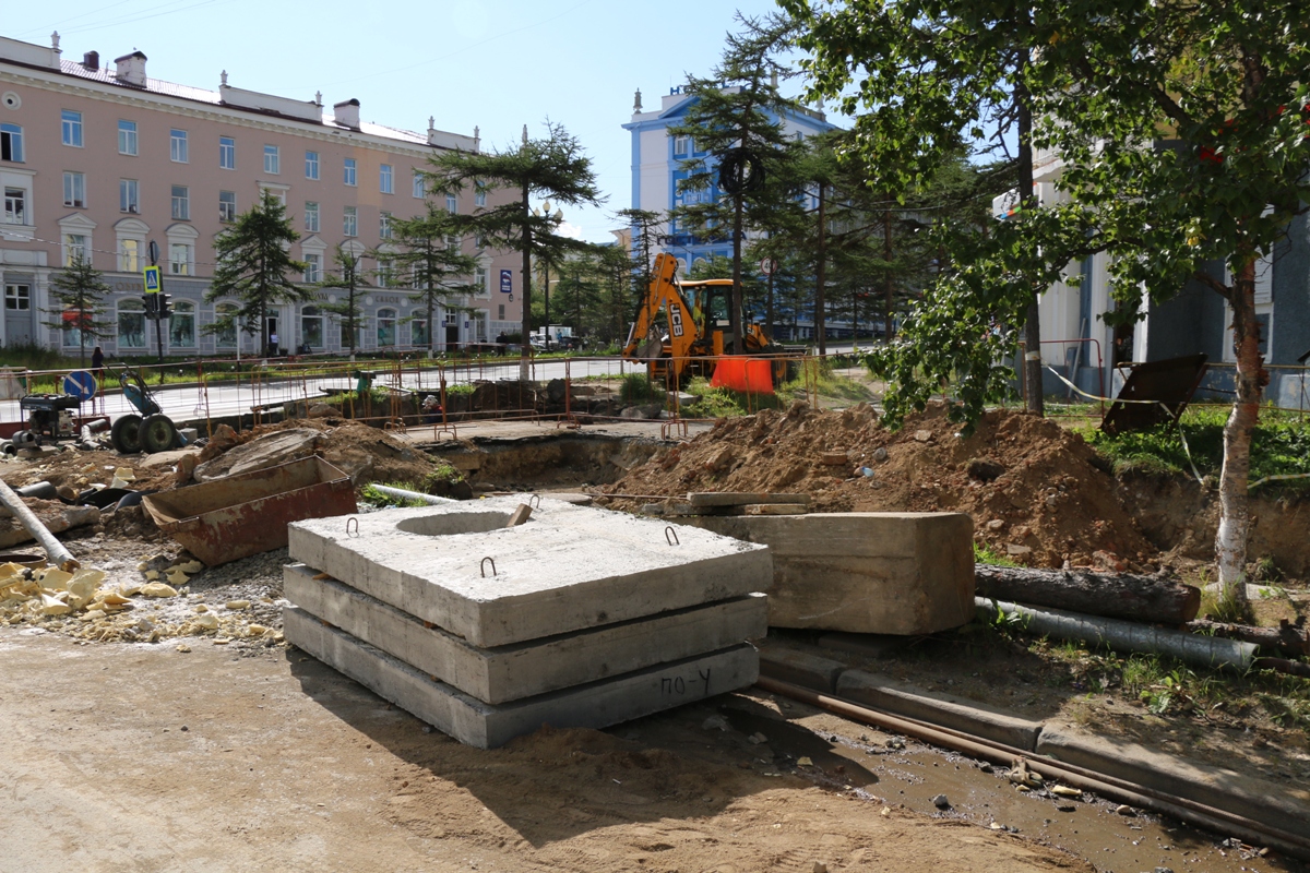 На Пушкина ремонт теплотрассы подходит к завершению, они должны закончиться к 10 сентября. После этого можно будет приступить к благоустройству территории, в свою очередь, его нужно сделать к 1 октября. Как поясняет заместитель директора МУП «Магадантеплосеть» Вениамин Кулаков, остались сварочные работы, гидроизоляция и засыпка участка. На объекте занято полтора десятка рабочих. Стоимость работ – 57 млн рублей из средств предприятия.