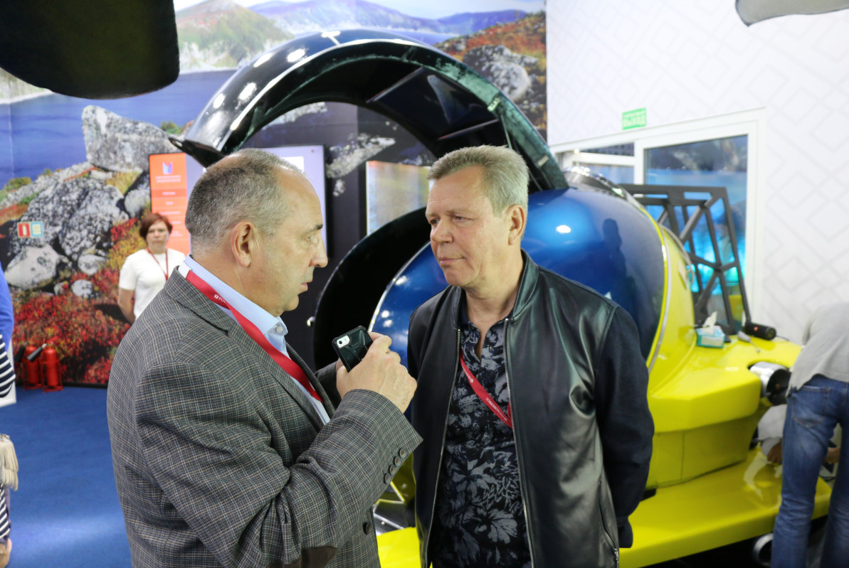 В туристической зоне размещена модель батискафа. Внутри него можно виртуально погрузиться на дно Охотского моря. Для этого использованы реальные подводные съемки.