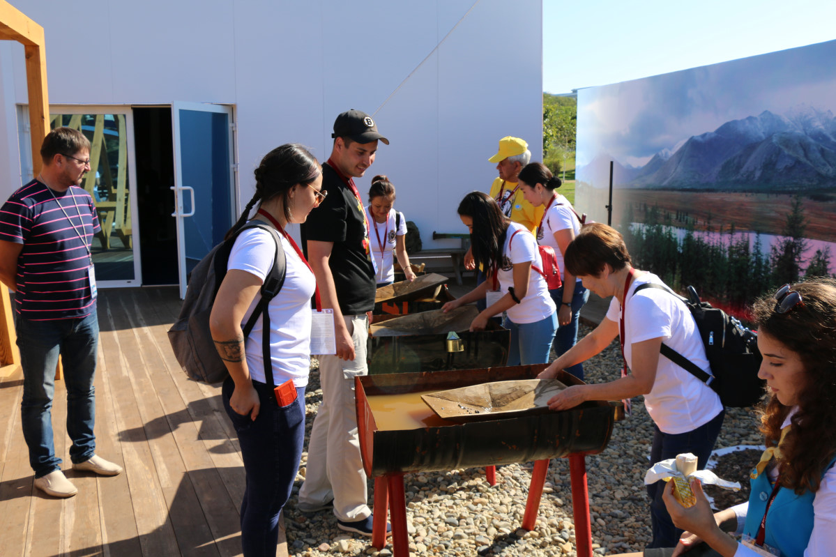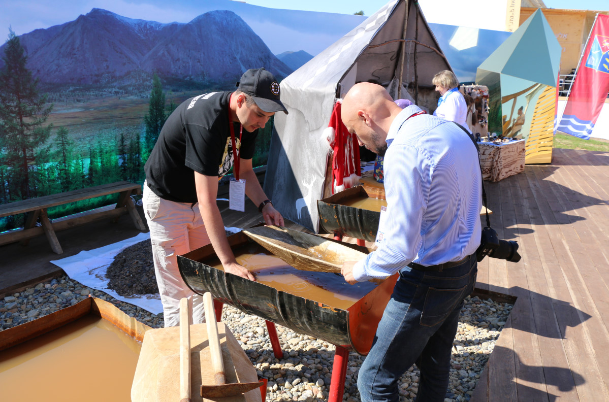 Все знают, что Колыма - это территория, где развита золотопромышленность. В этом году в регионе в четвертный раз прошел чемпионат по промывке золота "Старательский фарт". Мини-соревнование представлено и здесь, и все могут попробоватьсебя в роли промывальщика, продолжила она.