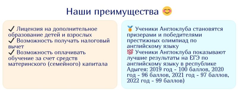 ● Длительность учебного года в Англоклубе 10 месяцев. С сентября по июнь включительно.