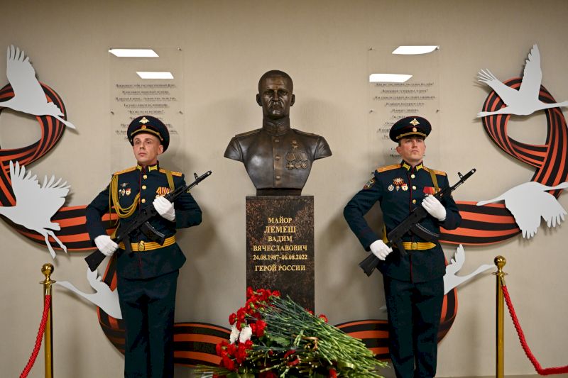 МАЙКОП, 10 декабря – МН. В средней школе №2 Майкопа состоялась торжественная линейка, посвящённая открытию памятного бюста Героя России, майора Вадима Лемеша, погибшего в ходе СВО, и присвоению его имени учебному заведению.