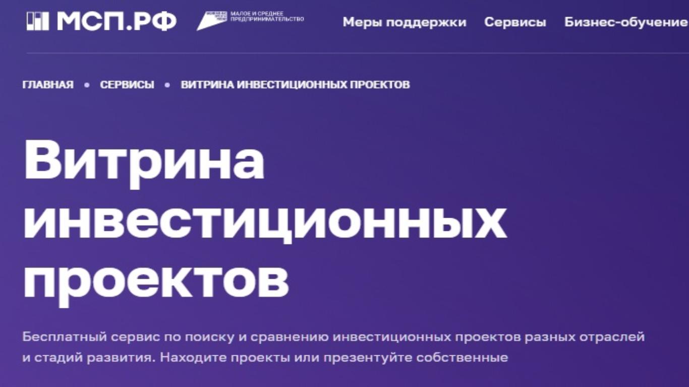 Малому и среднему бизнесу на Цифровой платформе МСП.РФ стал доступен новый бесплатный сервис для привлечения финансирования «Витрина инвестиционных проектов» по поиску и сравнению инвестиционных проектов разных отраслей и стадий развития. С запуском данного сервиса появилась уникальная площадка для коммуникации, на ней могут встретится те, кому нужны инвестиции, и кто готов вкладывать средства в другие проекты.