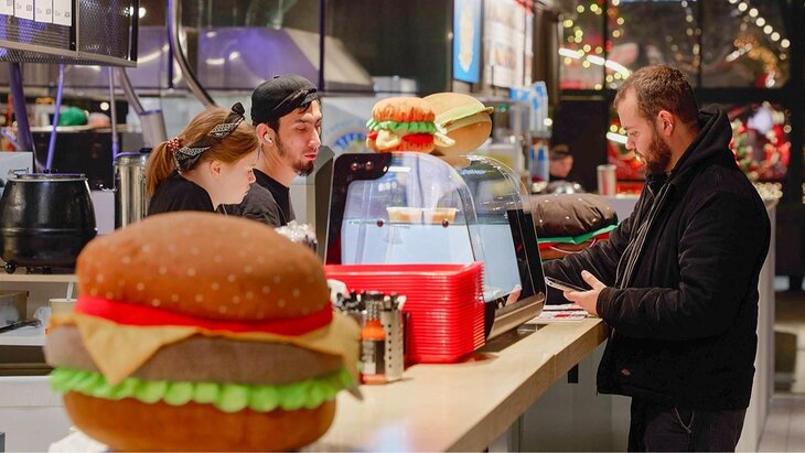 Фудкорт с кухнями из семи стран заработал в арт-павильоне "Фабрика подарков" проектов "Сделано в Москве" и "Зима в Москве", сообщает портал мэра и правительства.