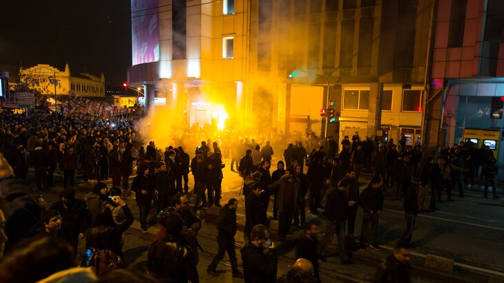 Спустя время беспорядки превратились в столкновения с полицией, а лозунги приобрели политический характер. В частности, протестующие выступали против политического строя в стране.